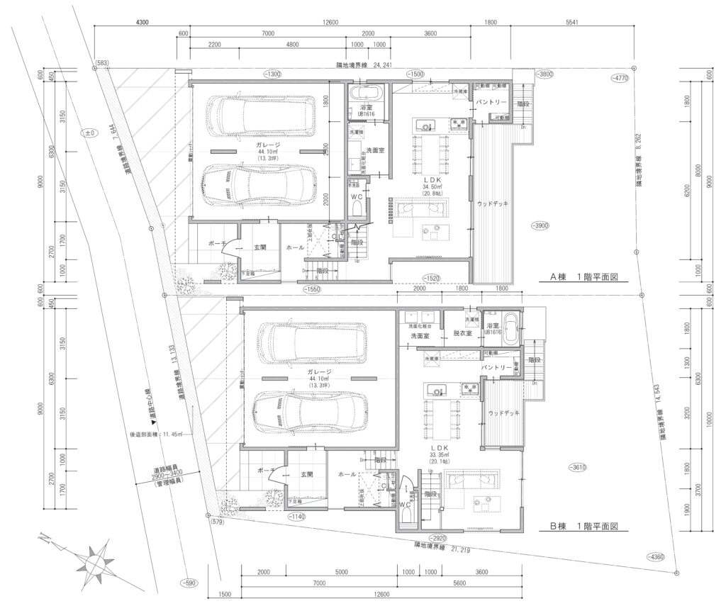 敷地面積:224.58㎡(67.93坪)/A棟 ・ 229.98㎡(69.56坪)/B棟