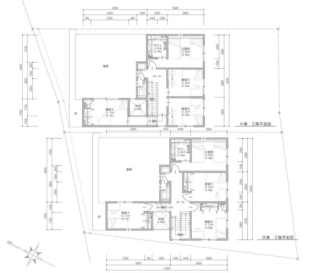 延床面積:178.11㎡(53.87坪)/A棟 ・ 184.45㎡(55.79坪)/B棟